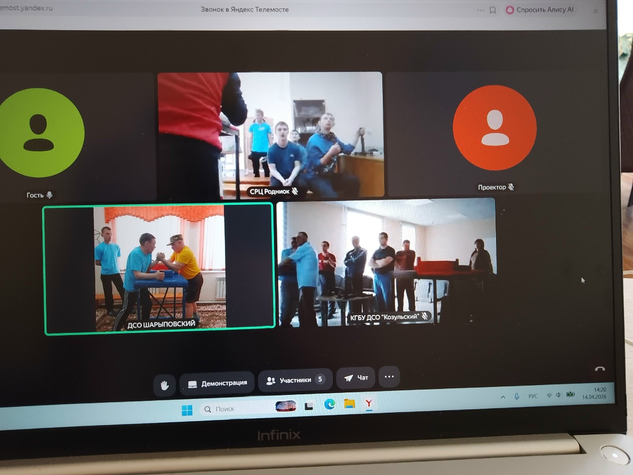 Проект объединяет три учреждения, и нет возможности часто выезжать, чтобы обменяться опытом. Однако современные технологии позволяют проводить онлайн-мероприятия. Так, тренер Иван Сергеевич Пахолюк провел онлайн-мастер-класс по армрестлингу для участников спортивной секции ДСО Козульский и СО «СРЦ Родничок», показал, как правильно тренироваться, какие упражнения выполнять и как побеждать в схватках.